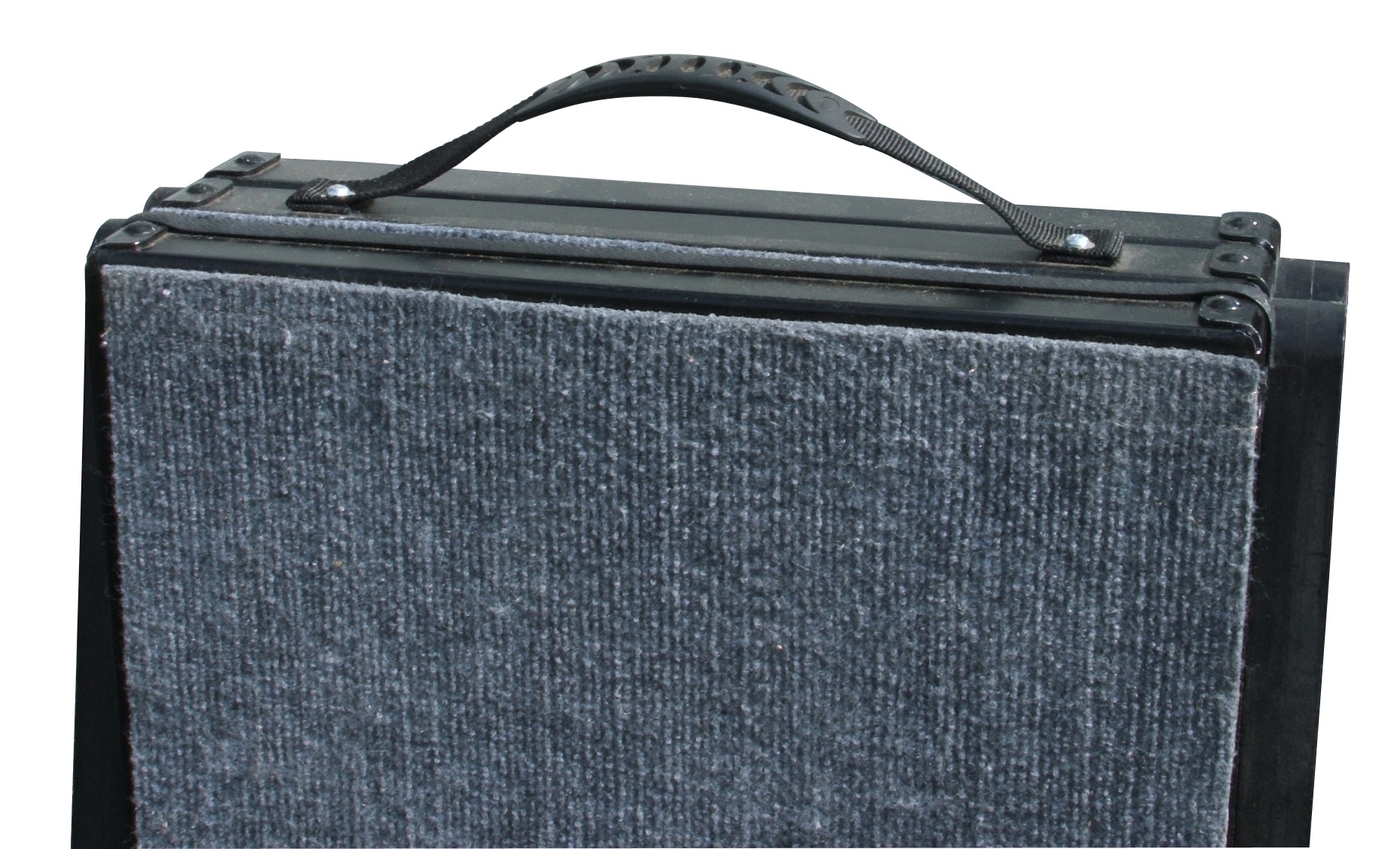 Set the angle of ascent/descent desired and secure the turn knobs a quarter turn. Do not over tighten the knob. Once knob is secured your dog can safely use the Pet Loader dog stairs.
